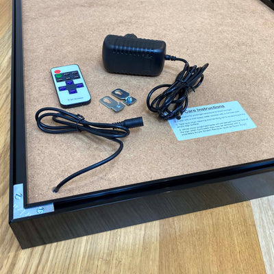 Our illuminated artwork is printed on a high gloss acrylic panel and backlit with LEDs giving a stunning glow like a neon sign. It is finished with a high-quality black aluminium frame giving a total size of 50cm x 60cm (19.7” x 23.6”) and a depth of 5cm/2". The illuminated image area is 47cm x 57cm (18.5” x 22.4”).