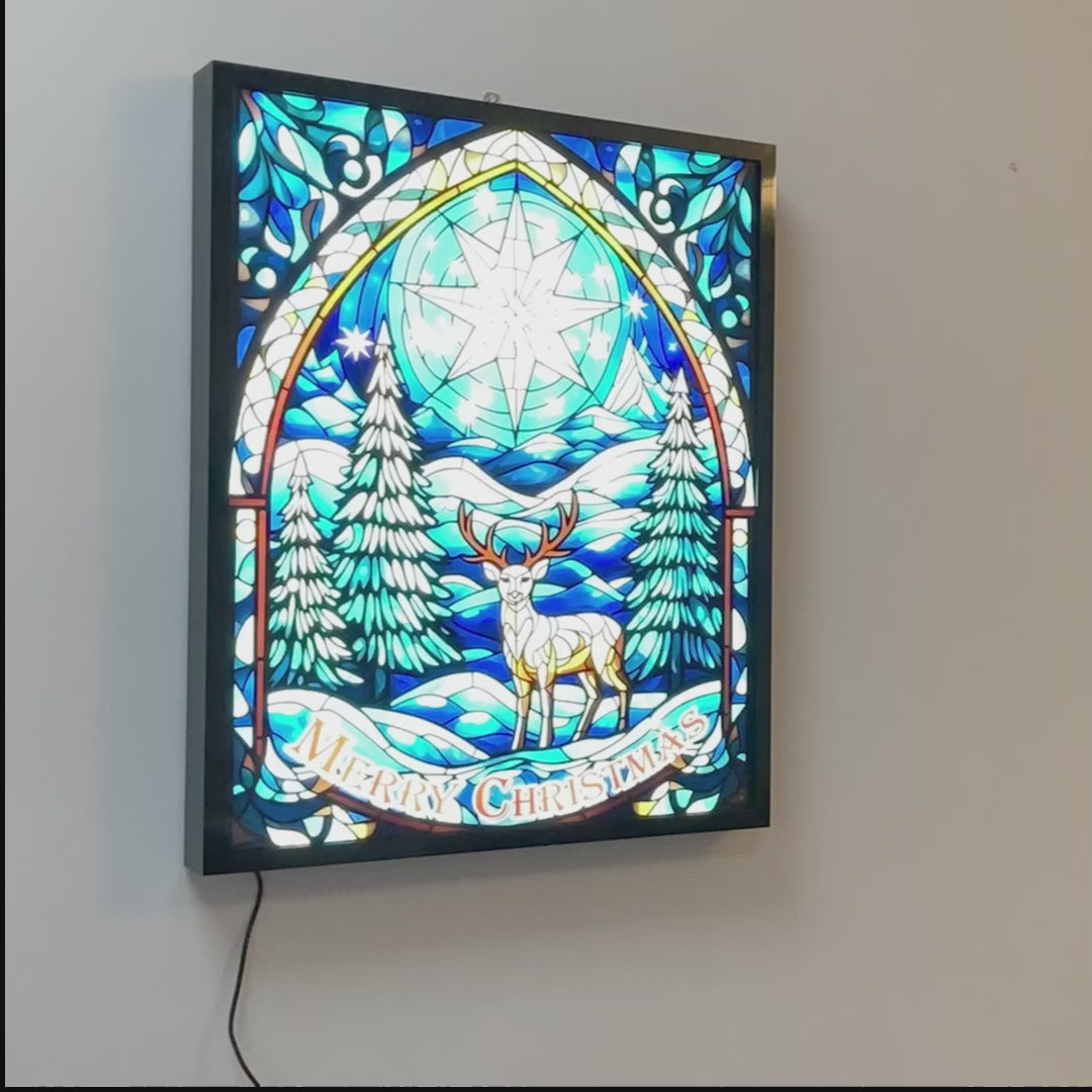 Illuminated Artwork Christmas Illustration "Stained Glass Snowman" with Personalisation